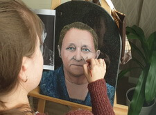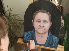 Первый этап работы – компьютерная обработка. Мы заменили одежду усопшей; удалили с головы платок, открыв полностью голову покойной; а также провели детальную доработку её лица: удалили большое количество морщин, сохранив черты.