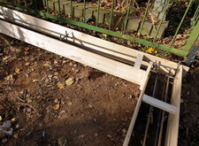 Далее мы выломали основание и спилили ограду, возведя по периметру участка надёжный металлический каркас для будущего бетонного цоколя.