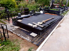 Укрываем место захоронения геотекстилем и приступаем к сборке и установке памятников.