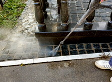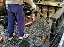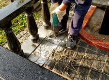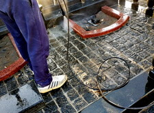 Приступаем к уборке участка. Смыли кёрхером строительную пыль, протёрли гранит.